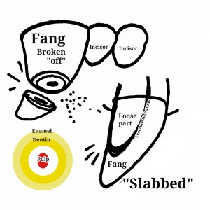 I have no idea how they know this, but when an animal breaks a tooth, the pulp cavity with the nerve dies very quickly and without that nerve, the tooth becomes numb. My suspicion is that mother nature realized she could not have carnivores walking around holding their jaw for a broken tooth instead of eating, they gave them a very expedient nervous system with regards to broken teeth. In other words, “they get over it real fast.“