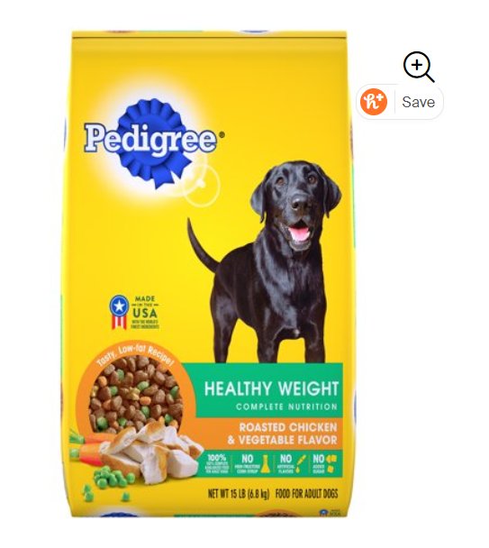 PEDIGREE Healthy Weight Adult Dry Dog Food Roasted Chicken & Vegetable Flavor, 15 lb. Bag $13.50 (Means 30lbs costs $27) is 7% fat, contains ground up meat meals to be able to say there’s glucosamine in it, it does not have microbes and it’s primary ingredient shows corn first. It’s “just alright” in a pinch.